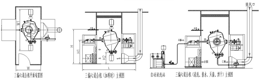 利用混合桶的形體產(chǎn)生單面不同容積多向錯(cuò)位交叉運(yùn) 動(dòng),以達(dá)到最佳的物料混合效果。物料混合桶在一定 壓力和溫度的飽和蒸汽下進(jìn)行定時(shí)滅菌處理,使與粉 針劑接觸的混合桶達(dá)到無菌要求。